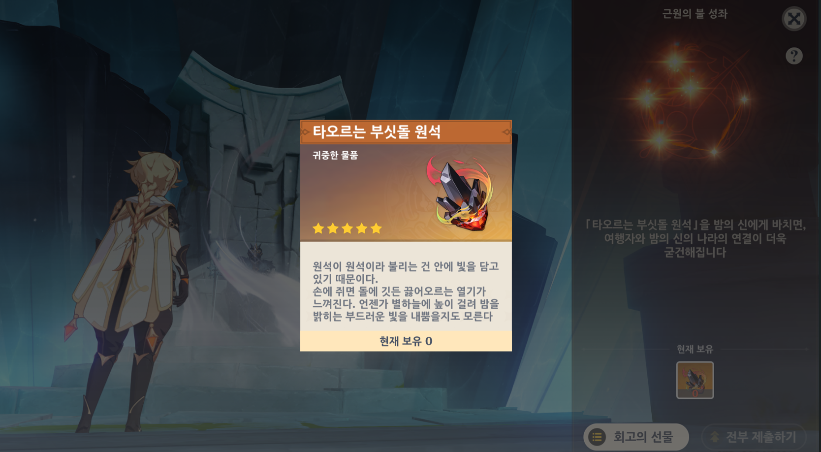 5.3 메인스토리 ⌈뜨거운 환혼시⌋ 완료 이후 오치카나타에 근원의 불 성좌가 생긴다