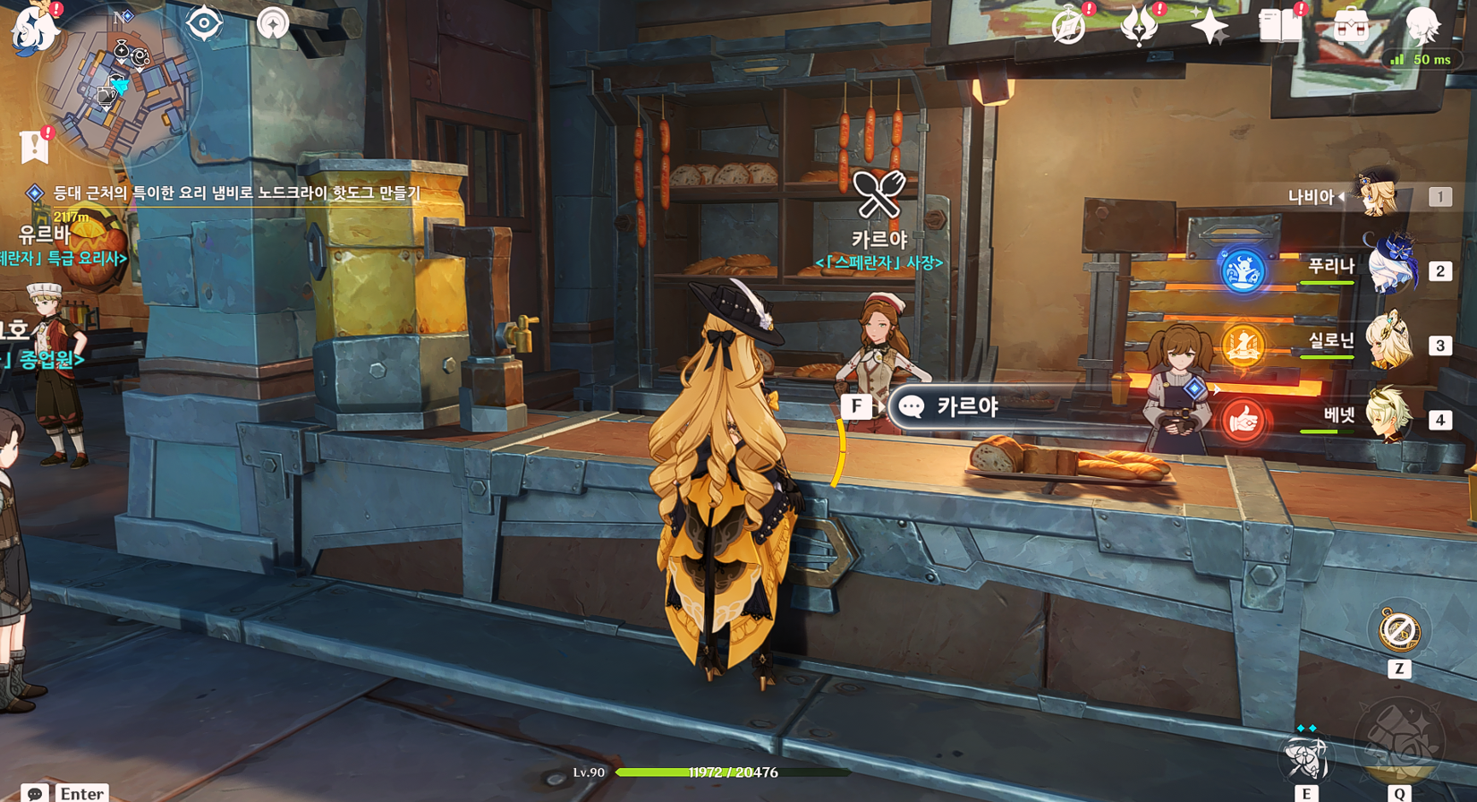 스페란자의 npc [카르야] 가 [노드크라이 핫도그]와 [백령과 닭구이] 레시피를 판매하고