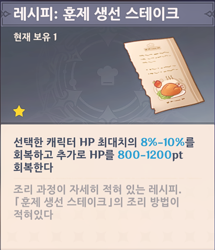 훈제 생선 스테이크의 레시피를 얻기 위해서는 현실 시간으로 3일이 걸리는 퀘스트를 해야한다.